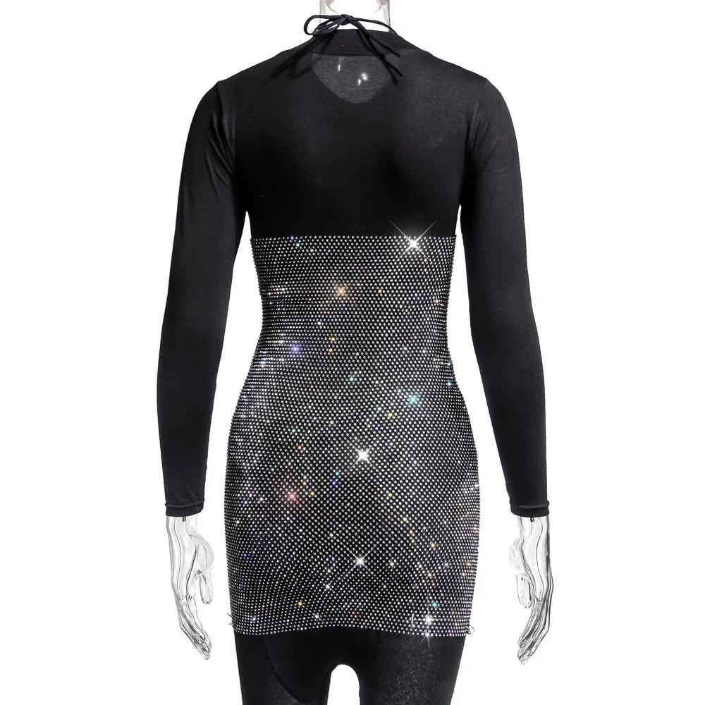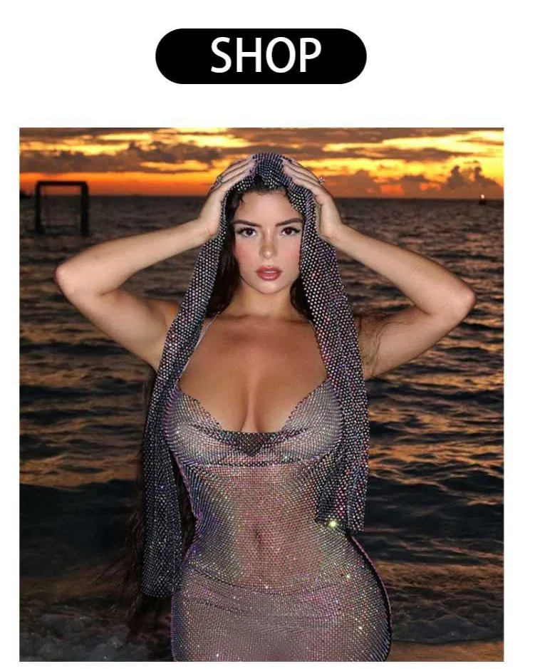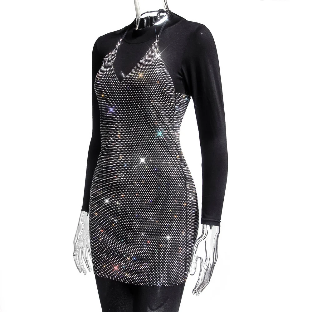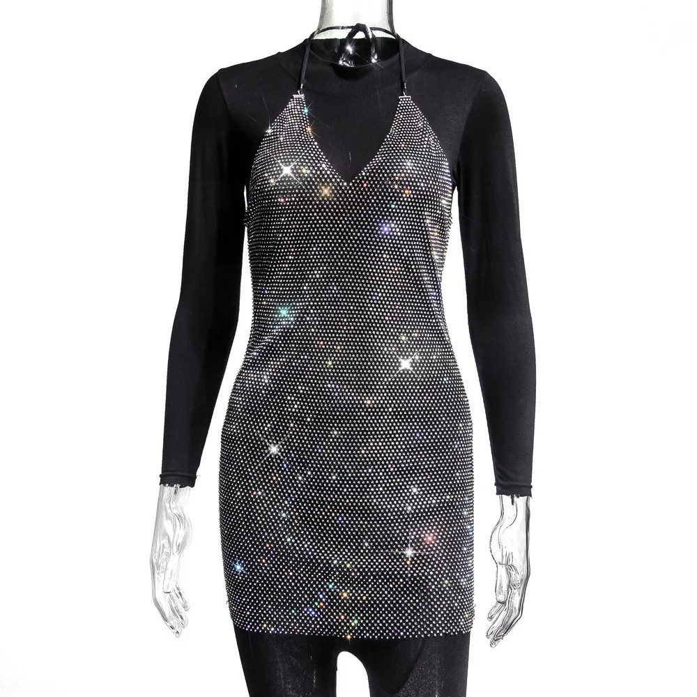 SRUBY сексуальное блестящее праздничное летнее платье женские сетчатые Стразы с металлической цепочкой для клубной вечеринки элегантные винтажные облегающие платья