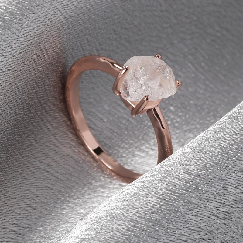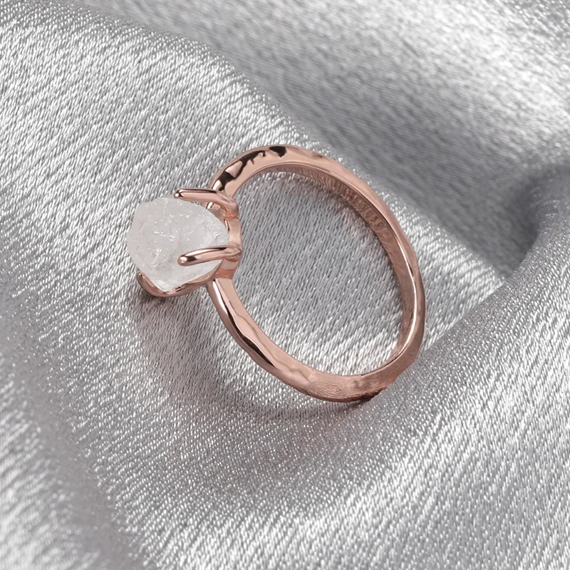 Кольцо женское неправильной формы, из белый кварц кристалл натуральных драгоценных камней, золотые ювелирные кольца