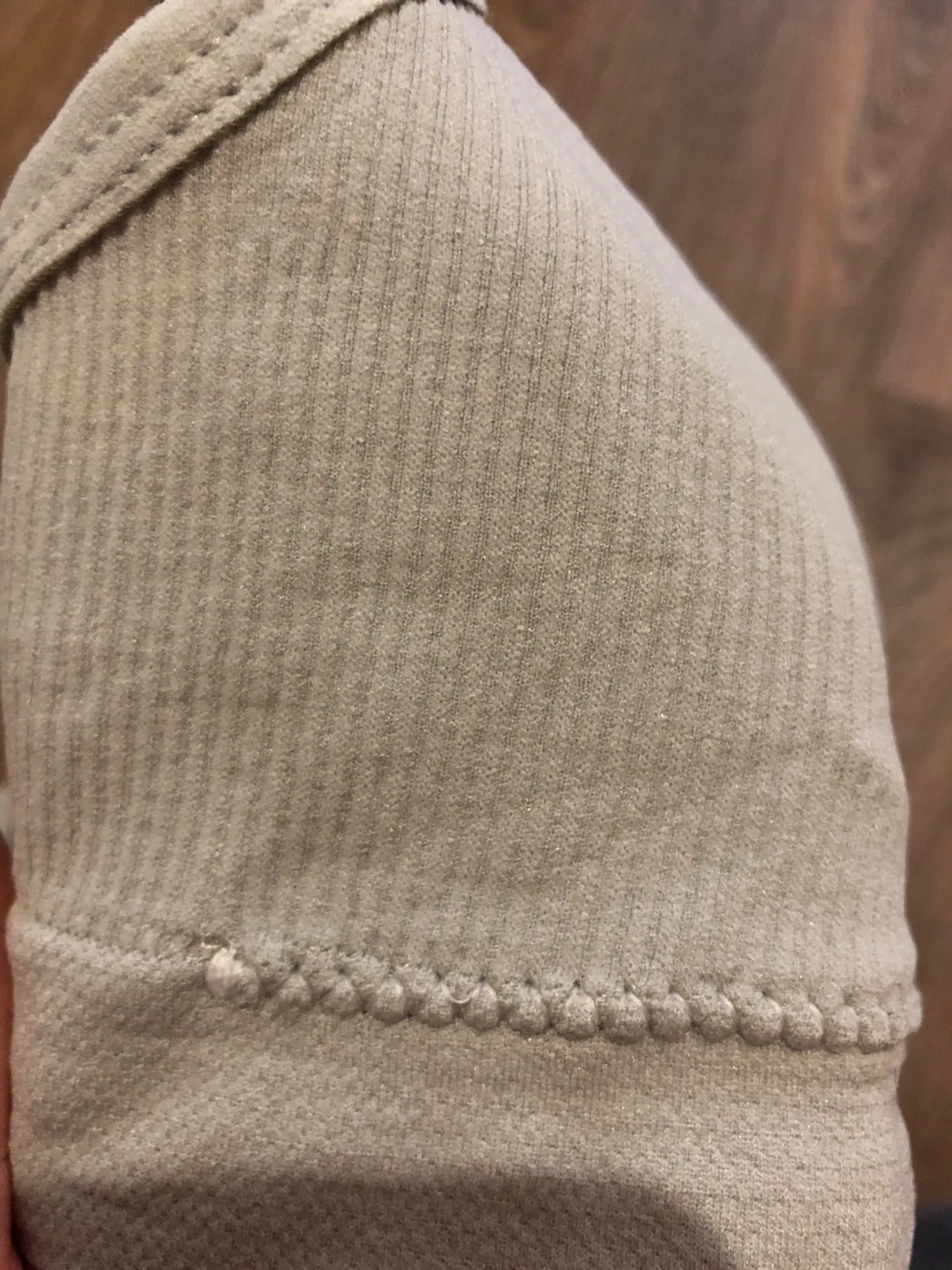 Пришли с дырками, продавец за это дал купон. В целом качество неплохое, но синтетика, все потеет) там ещё внутри есть пушап подклад, я его убрала, что с ним, что без него, все одинаково) Катышки сильно пристают к ним, в общем за такую стоимость, это нормально Стоит своих денег) мягкие, удобные, тянутся. У меня ОГ-94 сидит хорошо, но будь больше уже бы давили