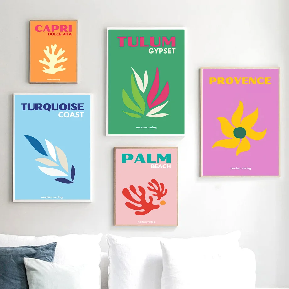 Абстрактная красочная цветочная Матисс, японская настенная Картина ...