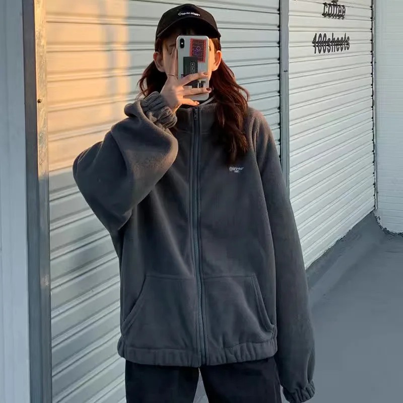 Флисовая куртка в стиле Харадзюку, хлопковая куртка большого размер...