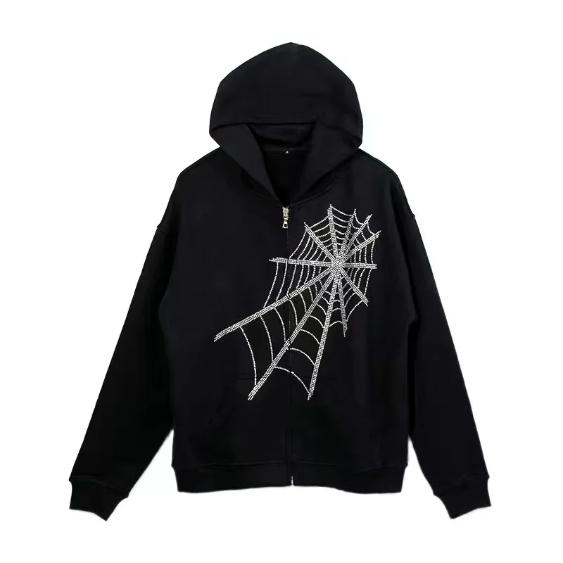 Модная Свободная Толстовка Стразы с капюшоном пауком свитшот на мол...