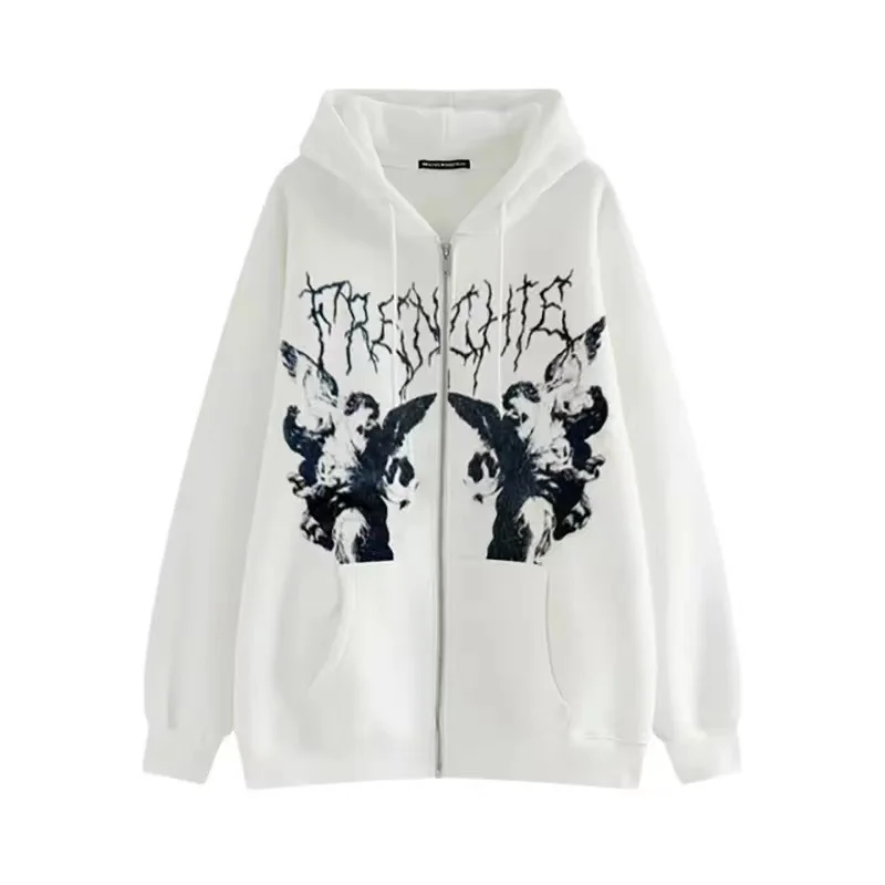 Куртка с капюшоном и принтом ангелов для мужчин и женщин, винтажная...