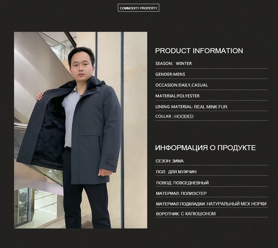 Шуба из меха норки, мужское меховое пальто, куртка из цельного меха...