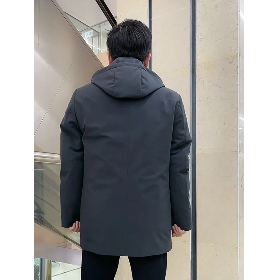 Мужская зимняя куртка с капюшоном, черная классическая деловая парк...