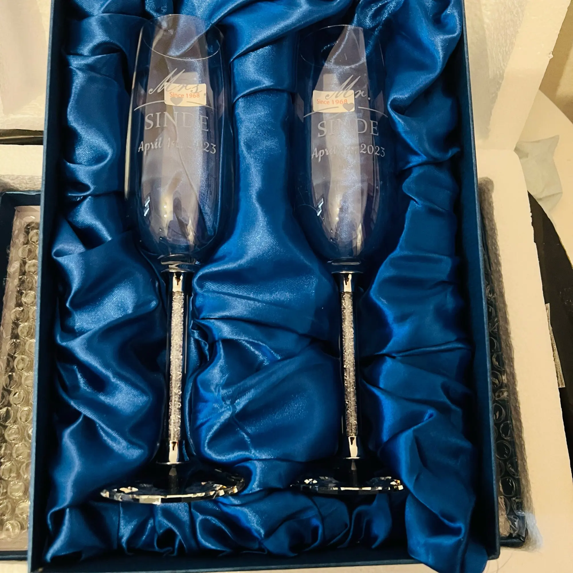 Персонализированный свадебный бокал es с подарочной коробкой, кристаллические бокалы для шампанского, для вечерние, гравировка, стеклянный бокал H1188