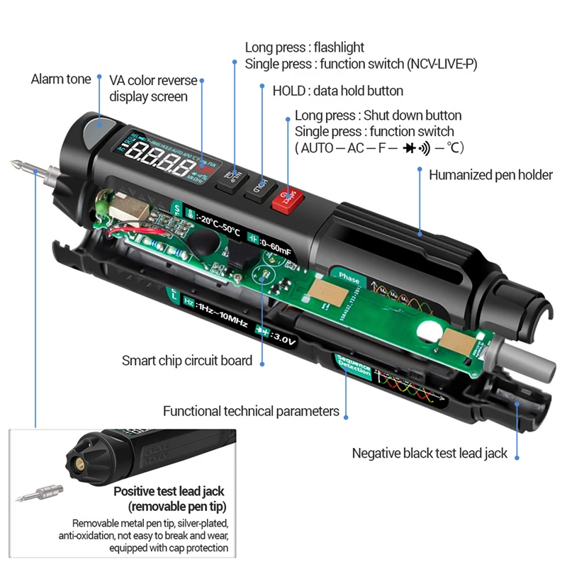 Цифровой мультиметр A3008, Бесконтактный автомобильный вольтметр с разрешением 6000 отсчетов