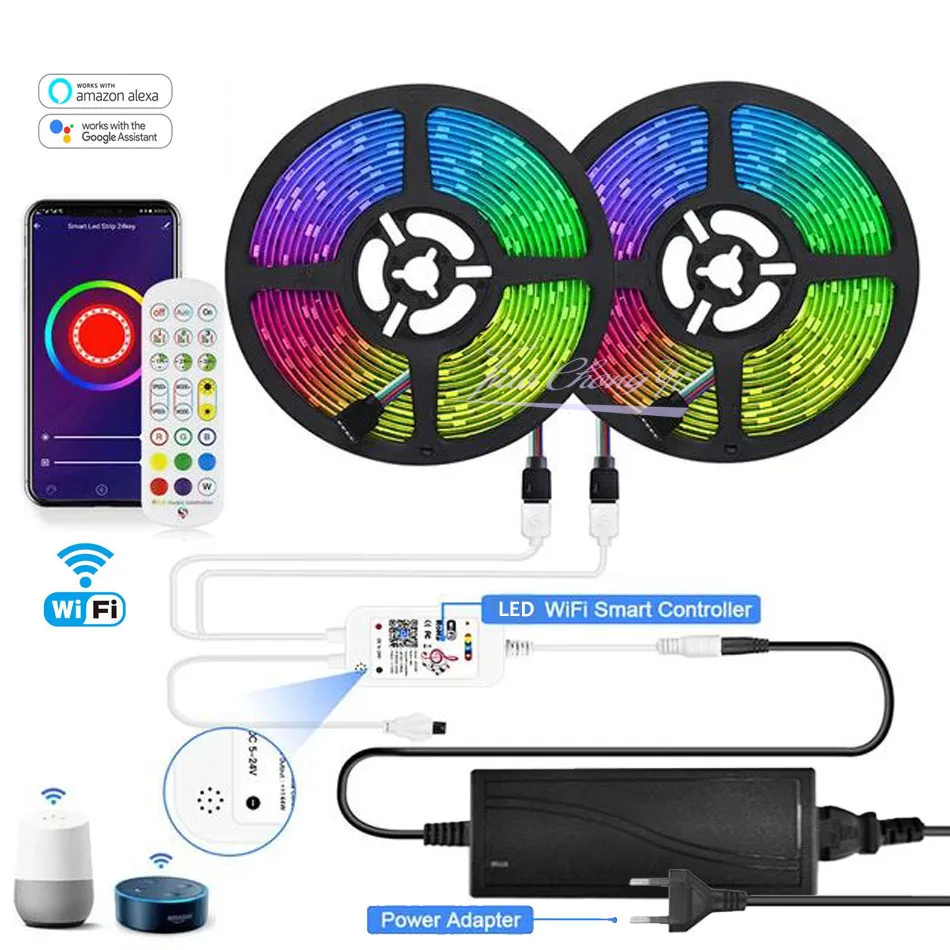 WiFi Smart LED Dual signal control ler 24Key IR Control для светодиодной ленты 5050 2835 RGB, работает с Alexa и Google Home-совместим