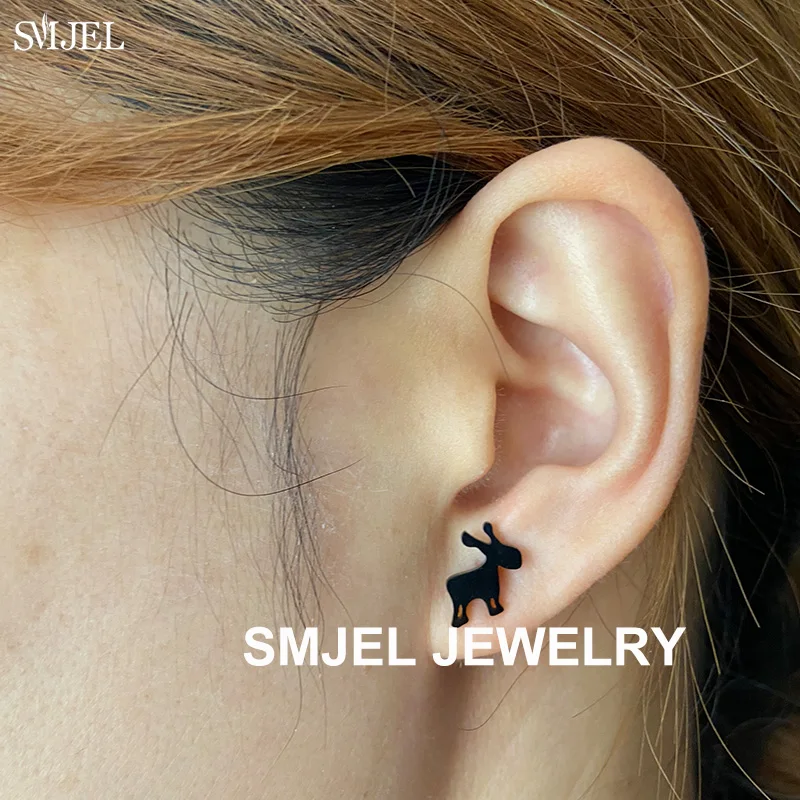 Крошечные милые серьги в форме подковы, лошади, женские серьги в виде животных из нержавеющей стали, женские серьги в виде овец, морских пингвинов, бриллиантовые рождественские украшения