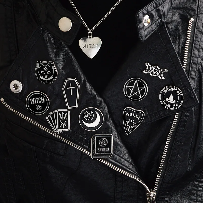Брошь в стиле панк, коллекция, черная эмалированная булавка, ведьма, ойджа, заклинания, гроб, Металлическая Булавка на лацкан, пуговица, подарочное украшение на Хэллоуин