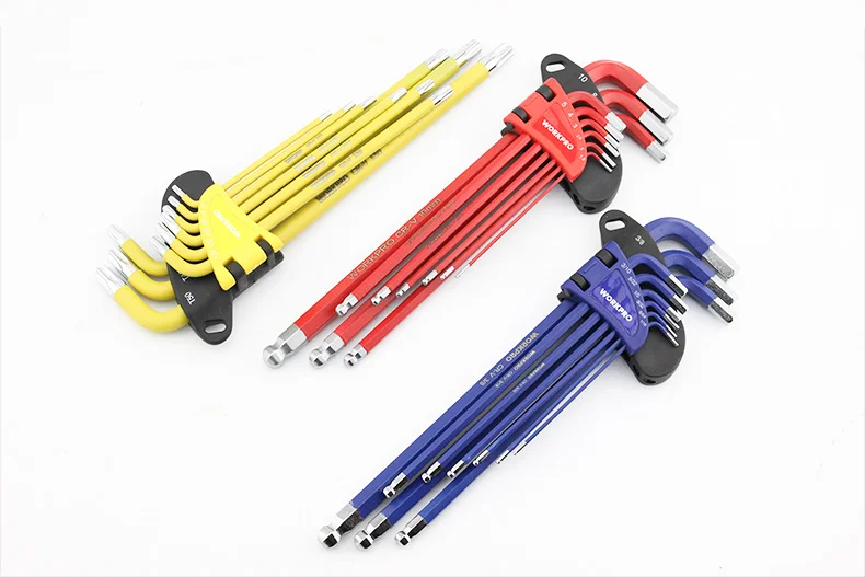 Набор ключей WORKPRO, комплект из 9 инструментов, универсальная Шестигранная звездообразная шаровая Головка, длинная рукояткакороткая рукоятка, точный метрический имперский ключ