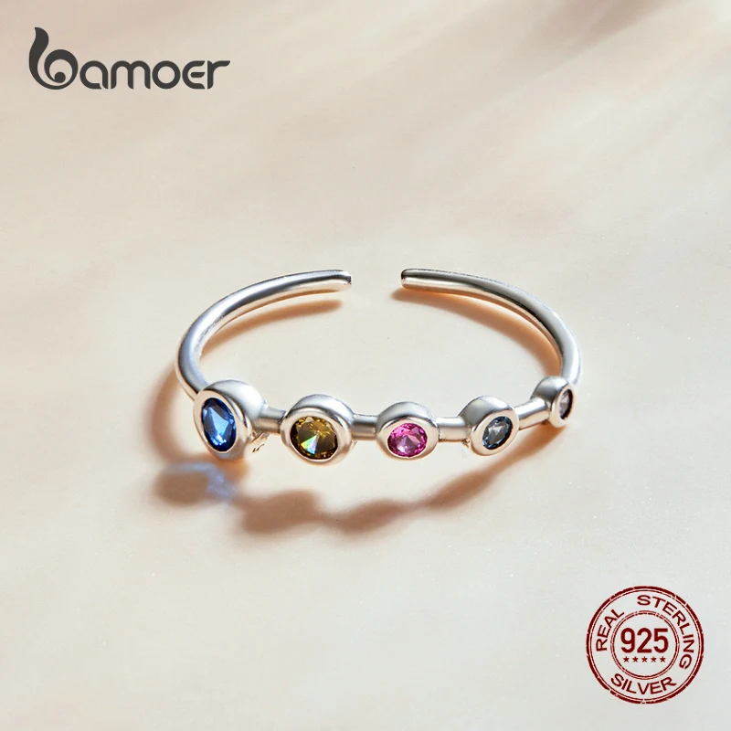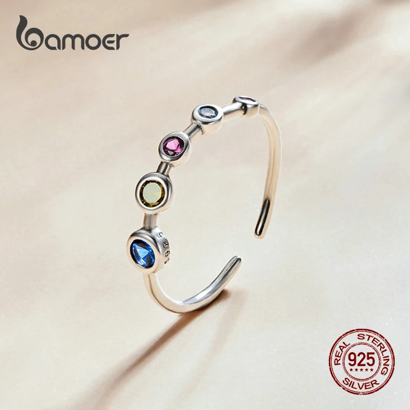 Серебряное кольцо bamoer радужного цвета, кольцо из стерлингового с...