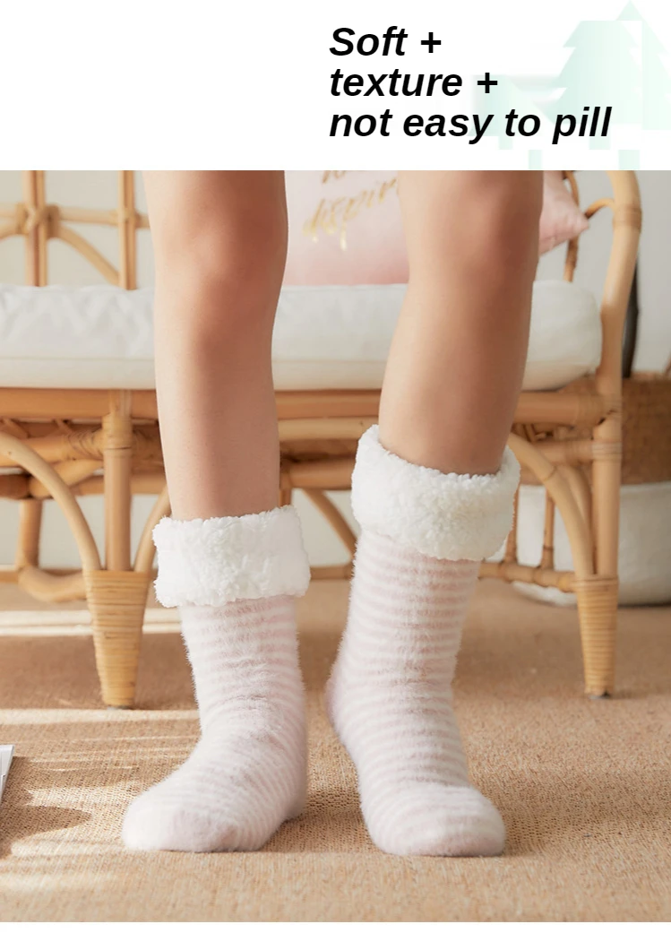 Теплые Пушистые Носки: удобная плюшевая прострочка и эластичный верх позволяют легко надевать и снимать, а также гарантируют, что ваши носки останутся в форме, не будут слишком свободны для провисания, И не растягивается с течением времени. Дышащая и приятная для кожи, отлично подходит для холодной зимы.