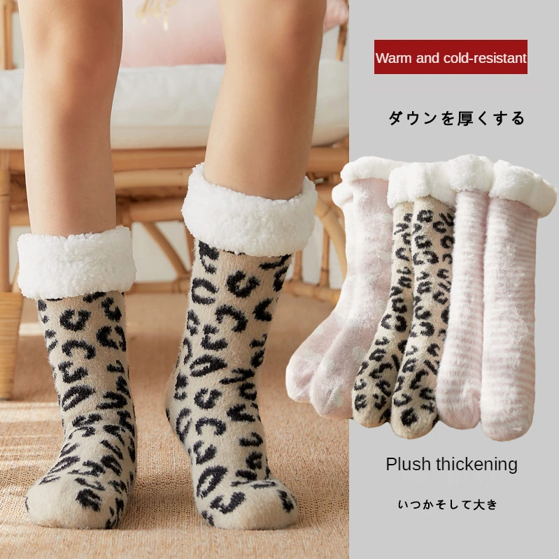 Леопардовые пушистые тапочки носки зимние теплые плюшевые женские мягкие женские пушистые домашние удобные мужские носки женские крутые