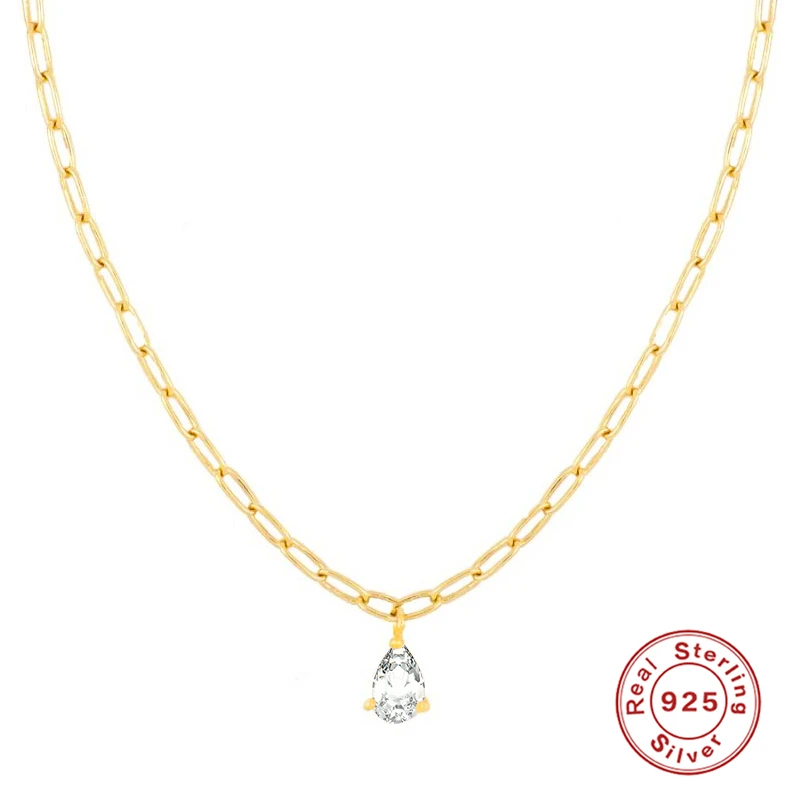 Цепочка женская из серебра 925 пробы с кулоном в виде капли воды, многослойные цепные ожерелья