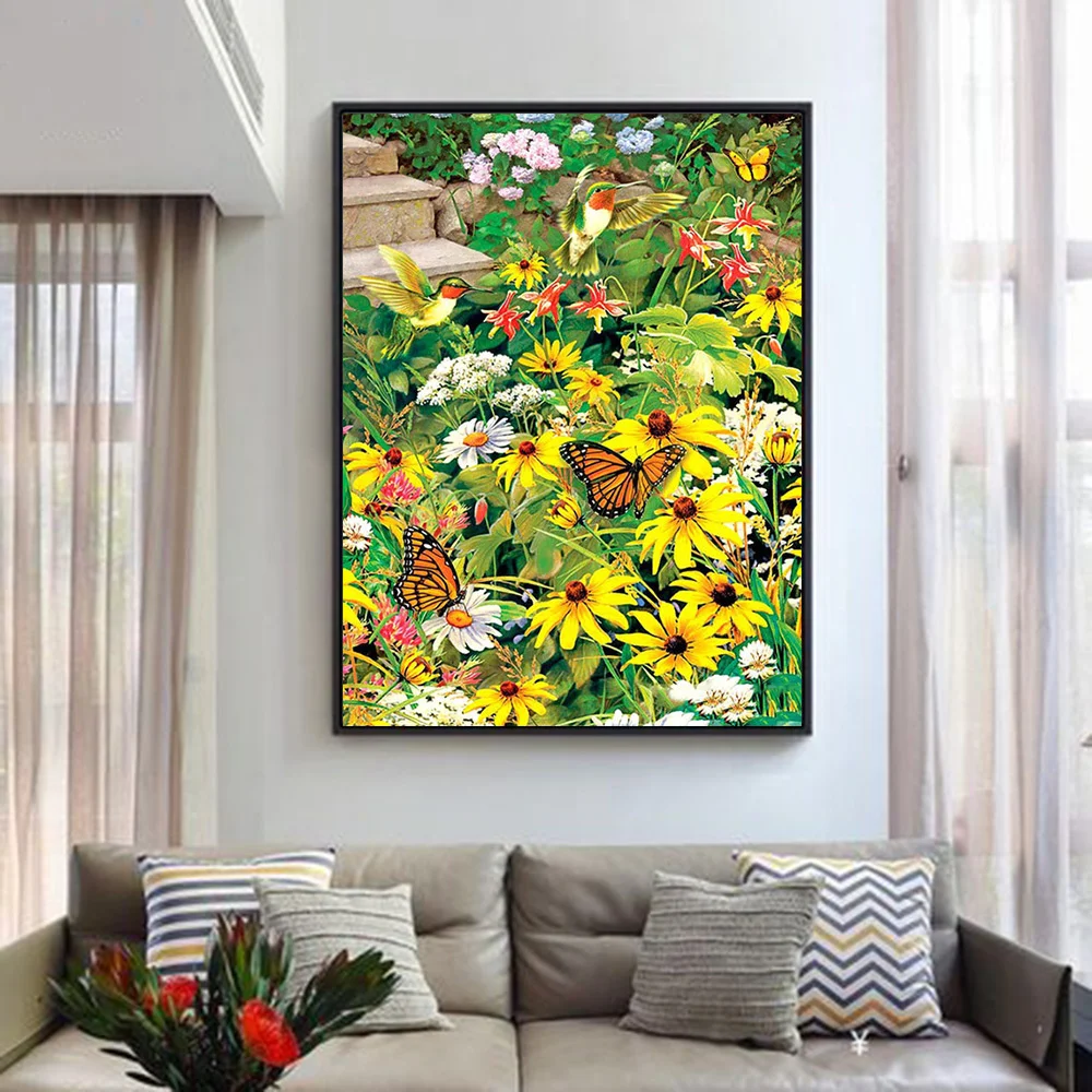 Алмазная 5d картина сделай сам HUACAN, домашний декор с цветами и маргаритками, мозаика с вышивкой, настенные наклейки с цветами и бабочками