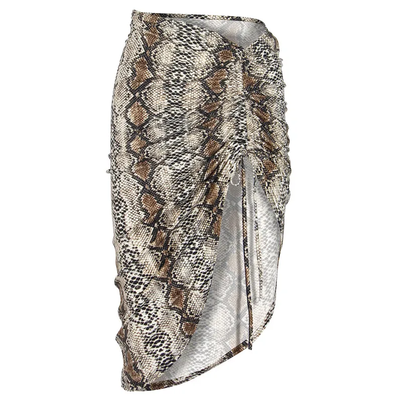 Мини-юбка женская с рюшами и завышенной талией, пикантная облегающая Клубная Юбка со змеиным леопардовым принтом, с завязками на бедрах, G1860B