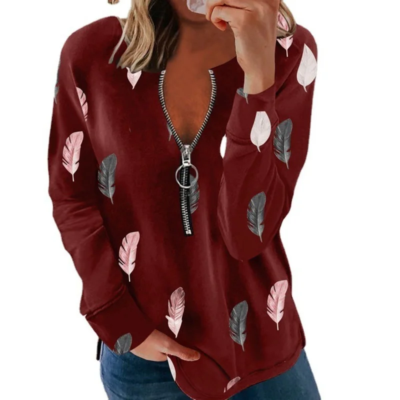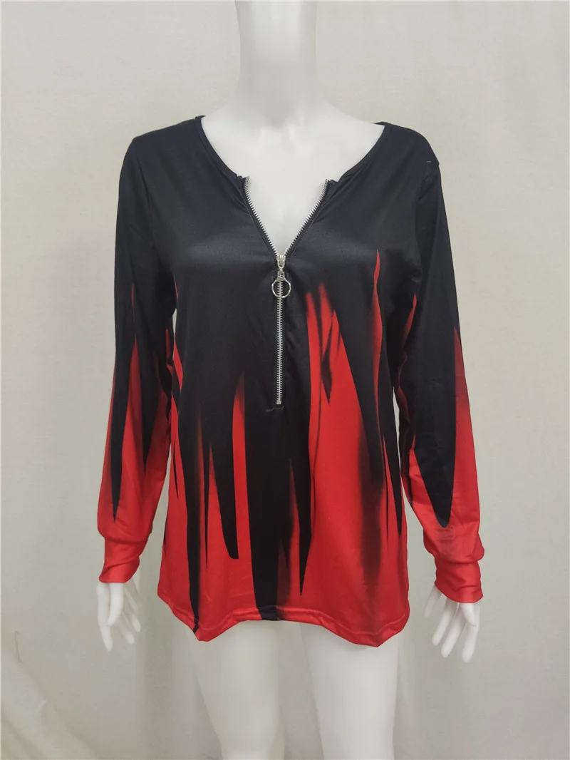 Женский пуловер с градиентным принтом, повседневный свитшот на молн...
