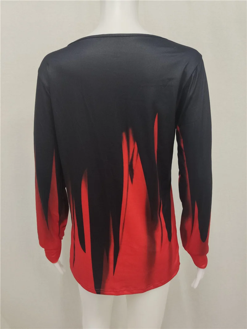 Женская футболка с длинным рукавом, V-образным вырезом и принтом в ...