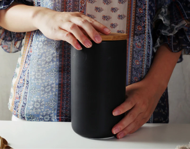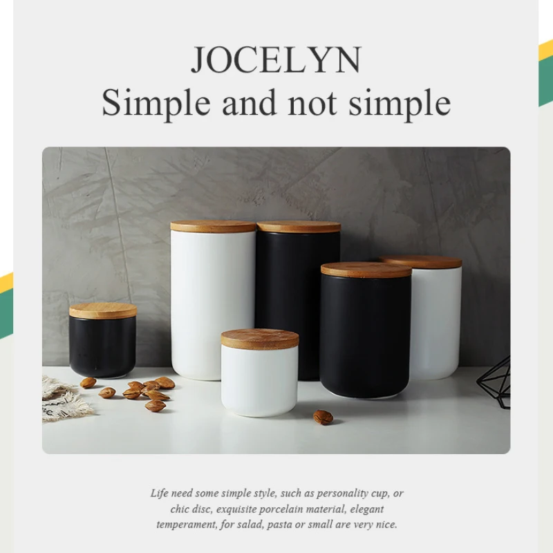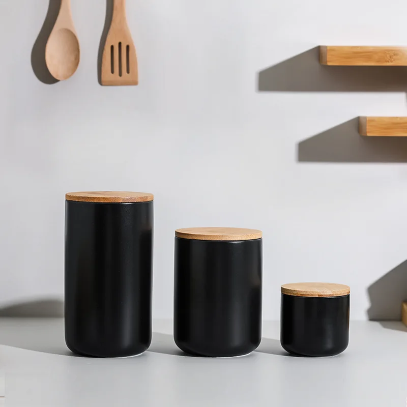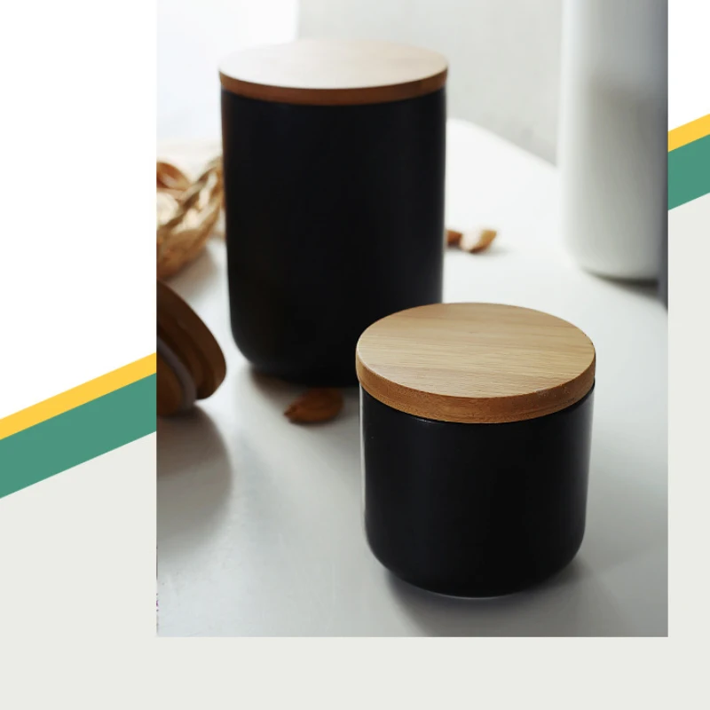 Керамическая кухонная бутылка для хранения в скандинавском стиле с герметичной деревянной крышкой, кухонные продукты, грубые зерновые конфеты, кофейные зерна, контейнер для чая