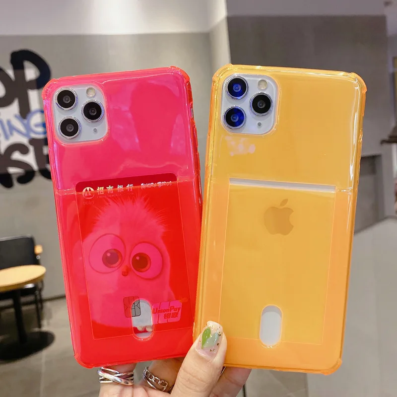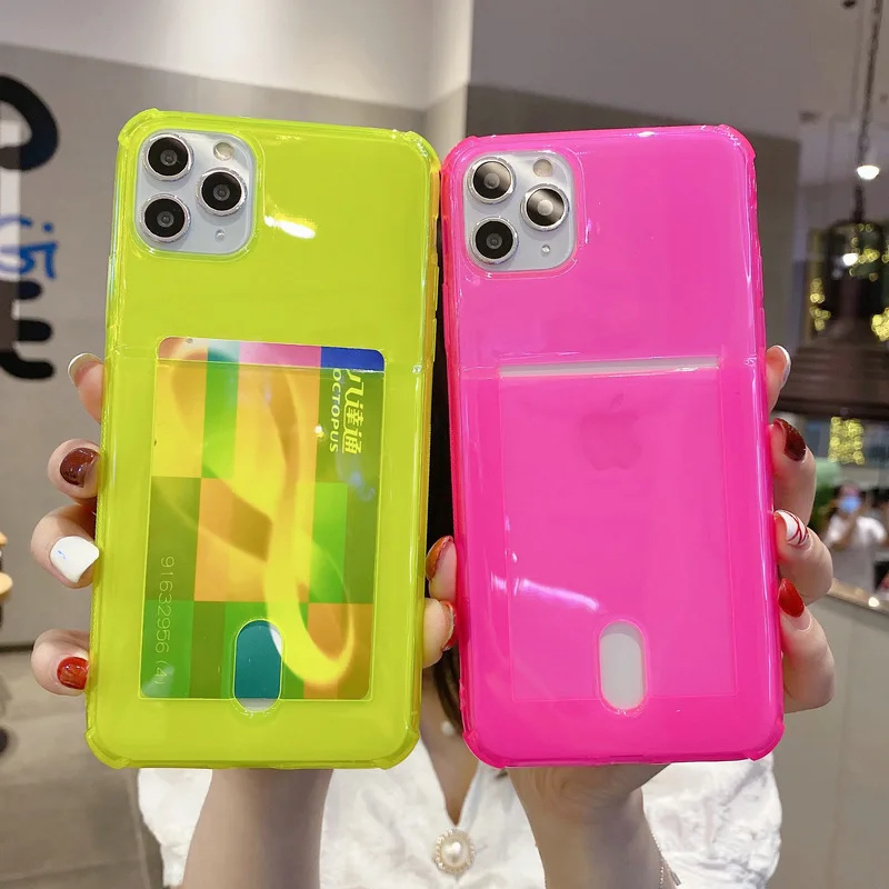 Флуоресцентный чехол для телефона с держателем для карт, противоударный чехол для iPhone 11 12 Pro Max XS X XR 7 8 6 6S Plus SE 2020, мягкий прозрачный чехол-бумажник из ТПУ