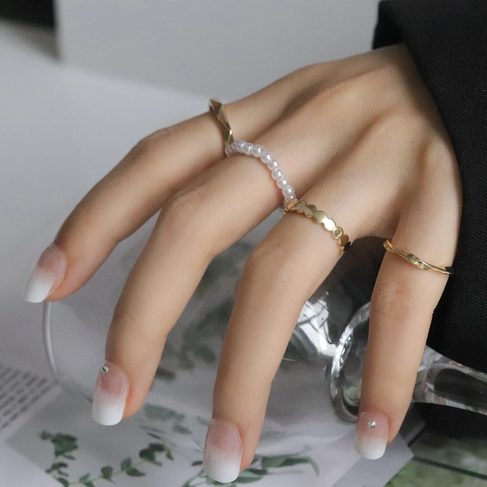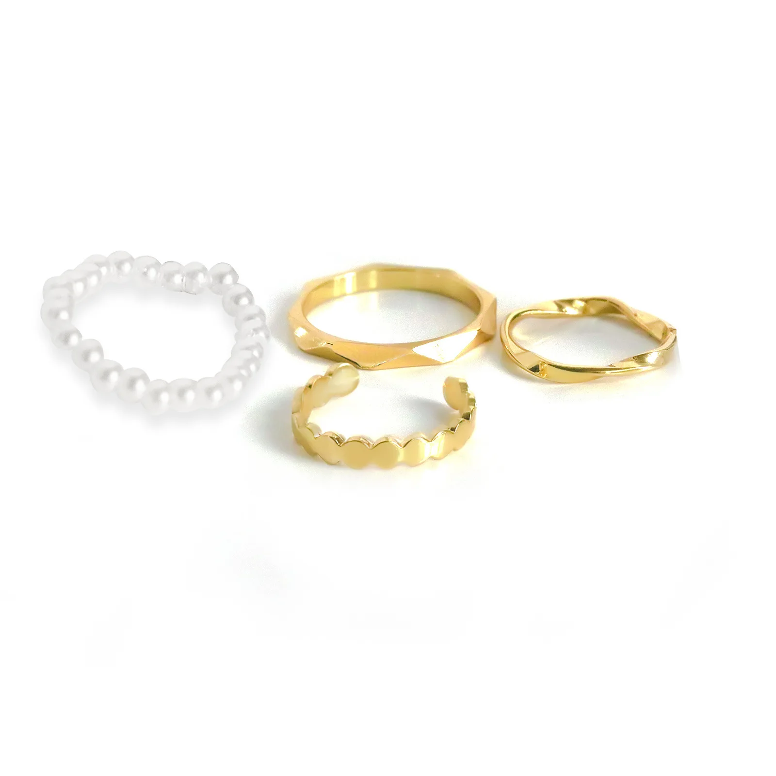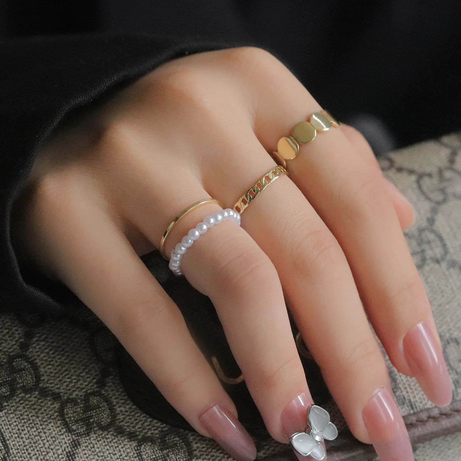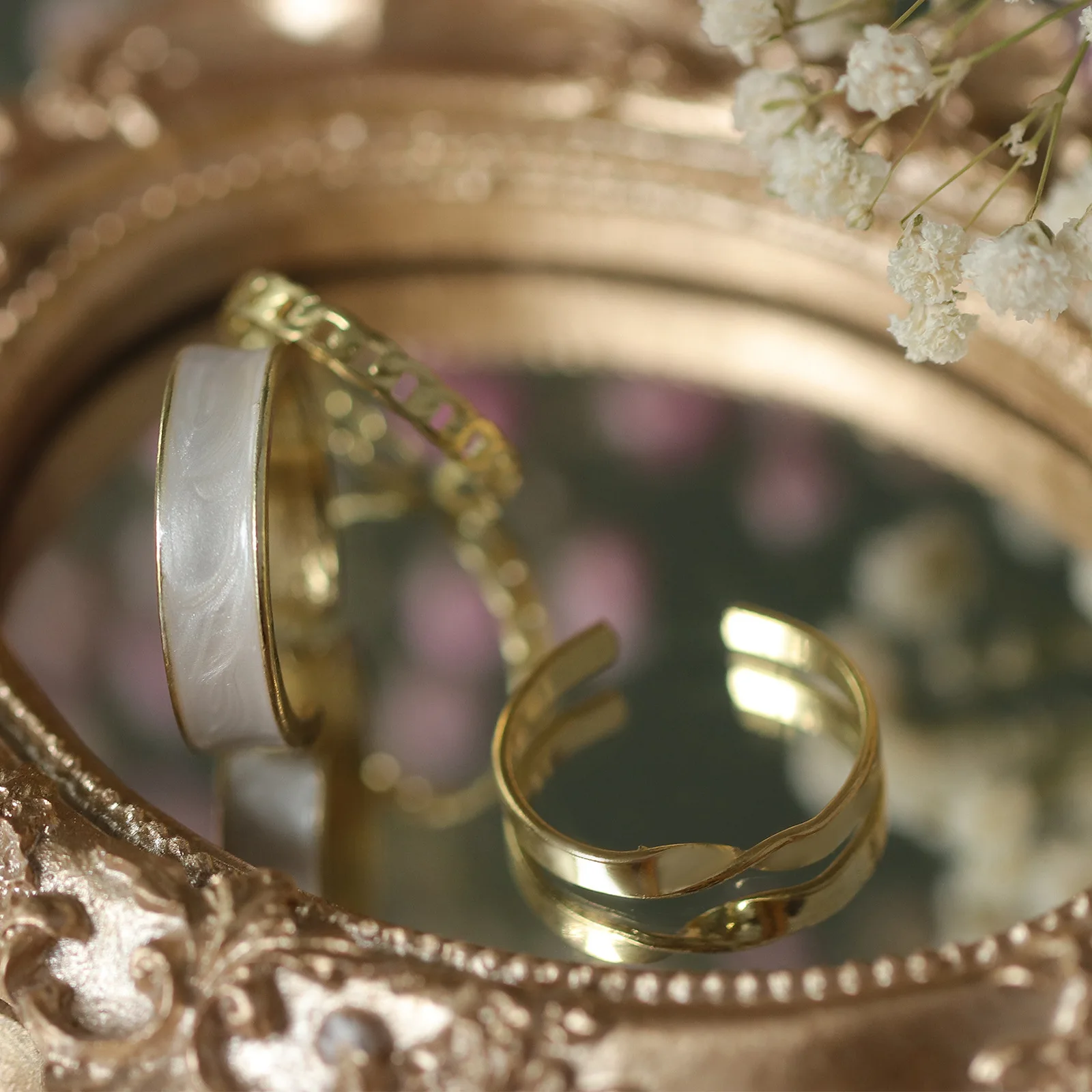 Кольцо женское золотистоесеребристое вечерние жемчугом и цепочкой