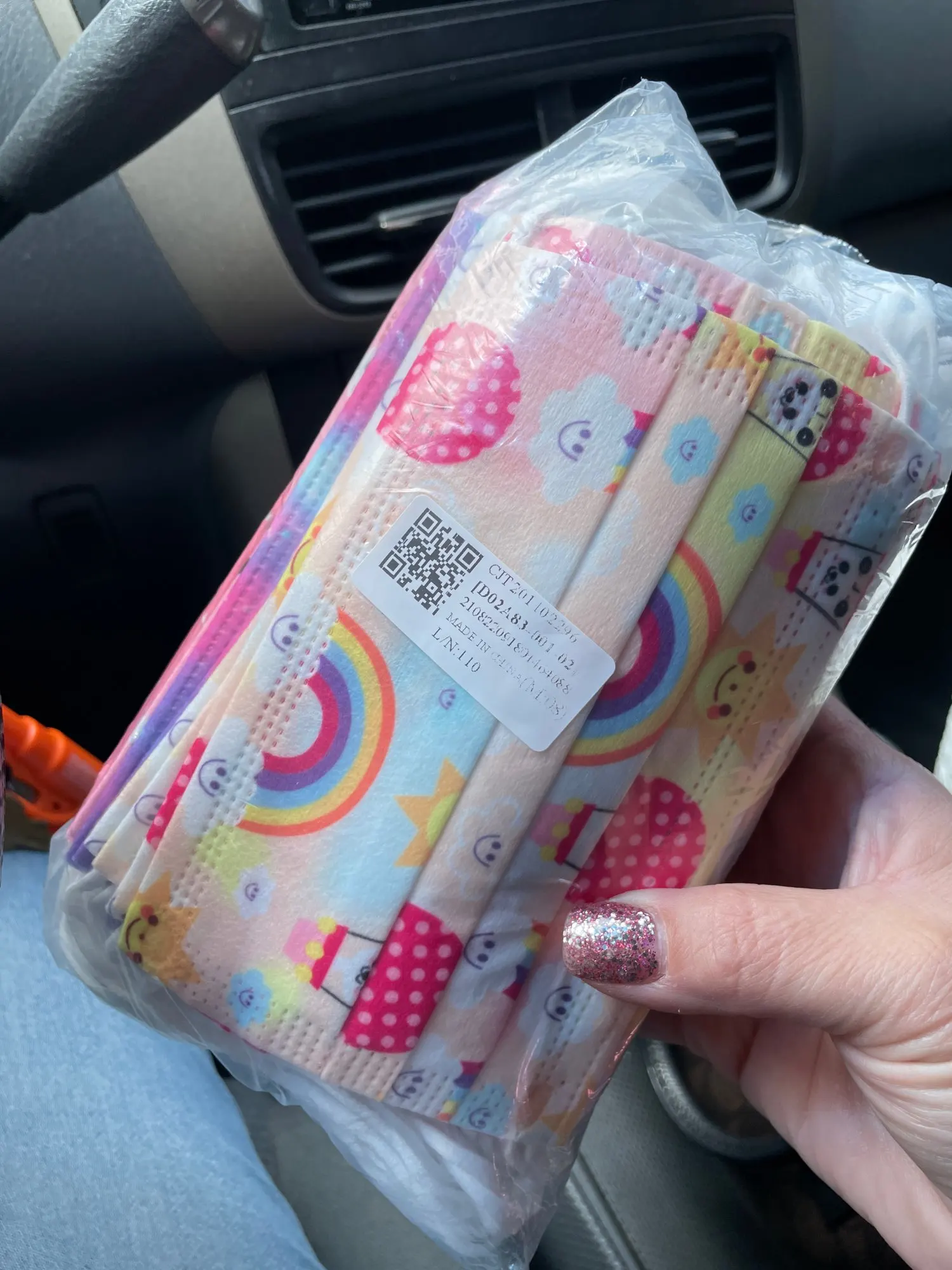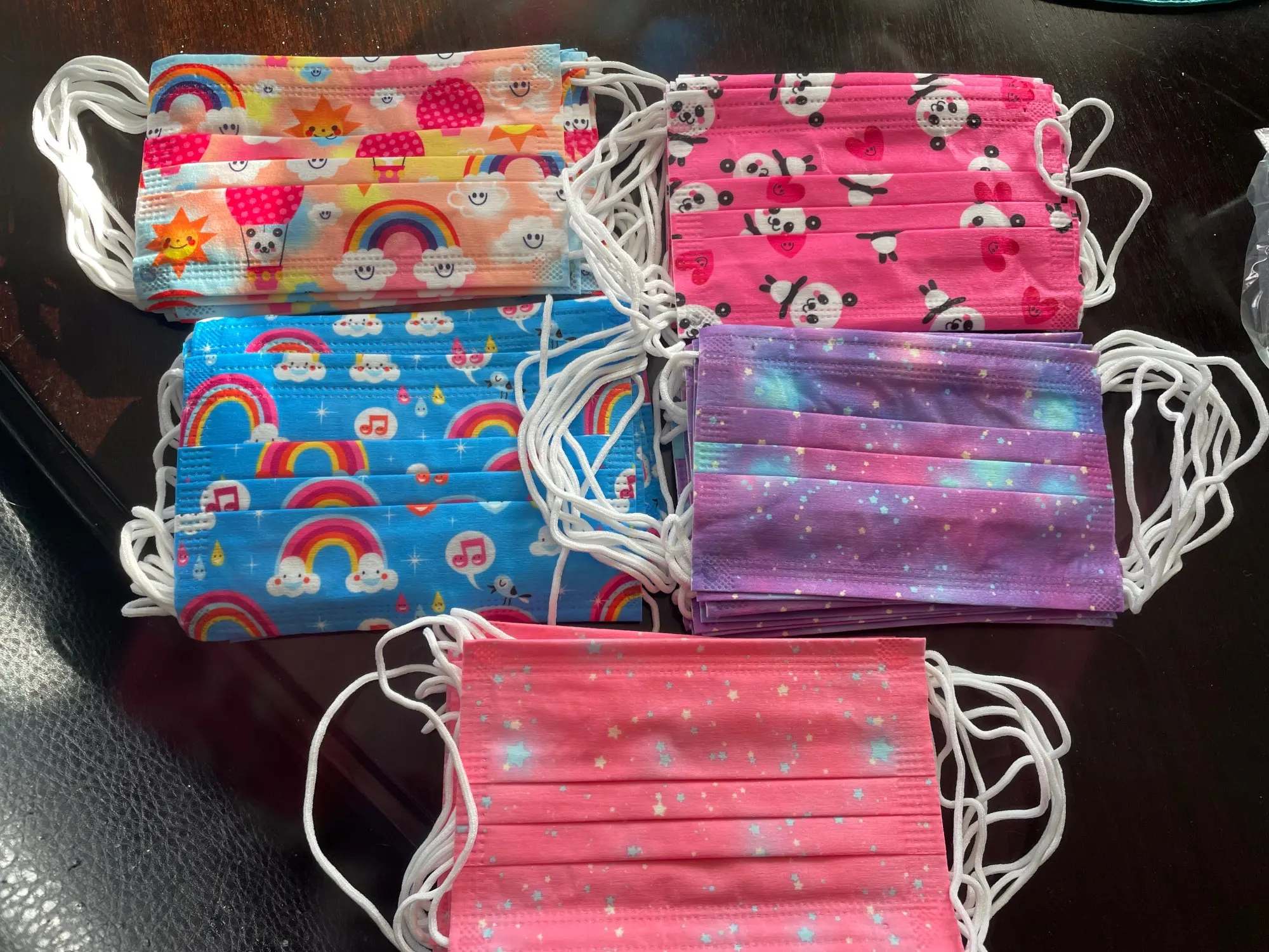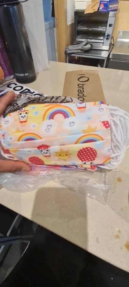 Только что прибыл! Супер быстрая доставка (для нас). Очень милые яркие цветные маски! Мои девочки полюбят их!