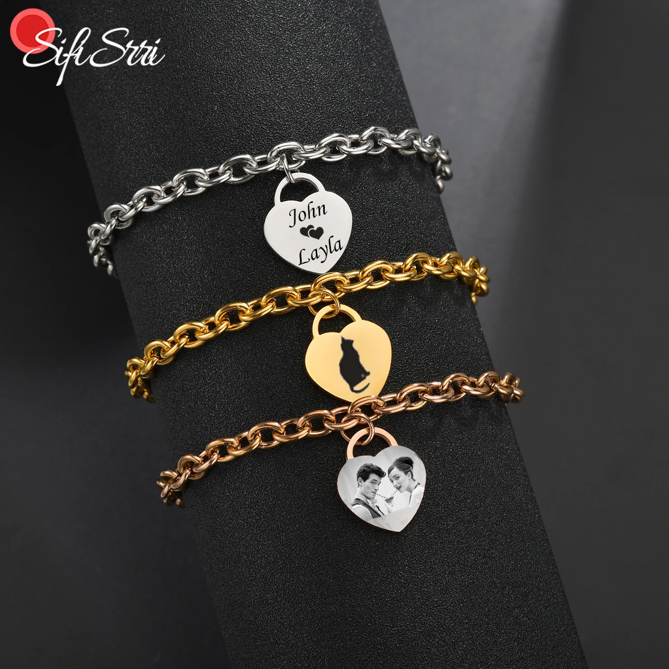 Sifisrri персонализированные браслеты из нержавеющей стали в форме сердца гравировка фото имя Дата пользовательские женские ювелирные изделия для влюбленных подарок на день рождения