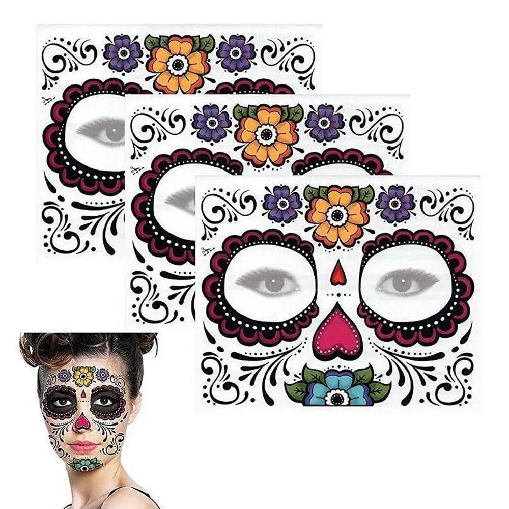 Горячая Распродажа модных Временных Тату-наклеек на Хэллоуин, день нарядов мертвецов, Череп, лицо, Популярная Наклейка, специальный макияж для лица