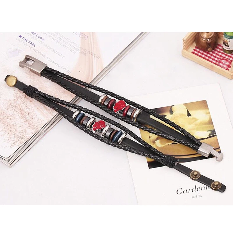 Популярные кожаные браслеты с изображением Красного облака из аниме нарутос, реквизит для косплея, черные плетеные браслеты, браслеты в готическом стиле, ювелирные изделия в стиле панк, подарки