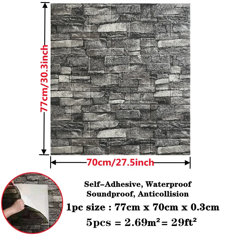 5 шт., 3D-наклейки на стену в виде кирпичной стены