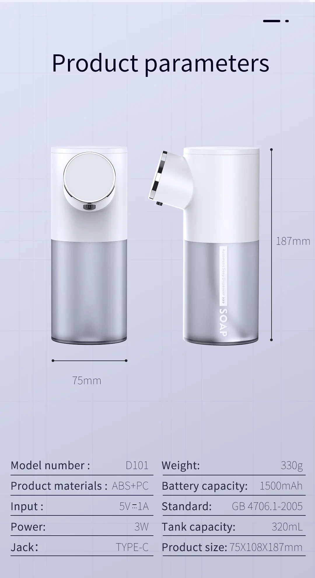 -320 мл большой емкости открытый резервуар для воды, удобно и быстро, чтобы пополнить жидкости-0,25 во-вторых автоматизированный инфракрасный индукционный для того чтобы произвести пена быстро-Совместимость с различными поролоновыми дезинфицирующими средствами для рук-Встроенный высокочувствительный датчик температуры, цифровой дисплей изменения температуры окружающей среды-Точно Контролируйте соотношение смешивания мыла и воздуха, делая пену более плотной-Эффективный микро мотор, низкое энергопотребление, более длительный срок службы батареи