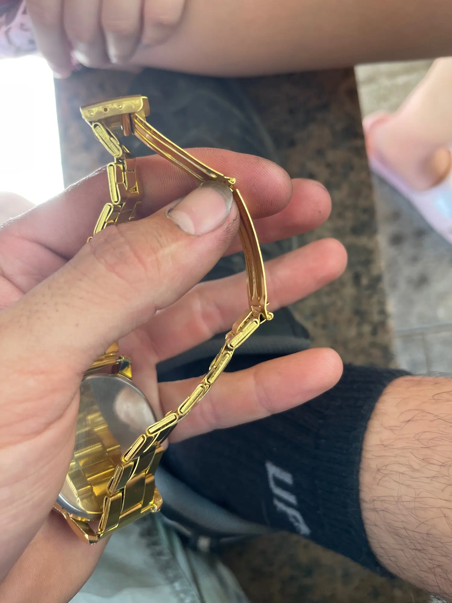 Продукт ужасен, он выглядит как игрушка, и он должен быть сделан из картона Кока, потому что он звучит как листовой металл, он поцарапан, с наполовину свободным браслетом, С износом краски и не закрывает браслет