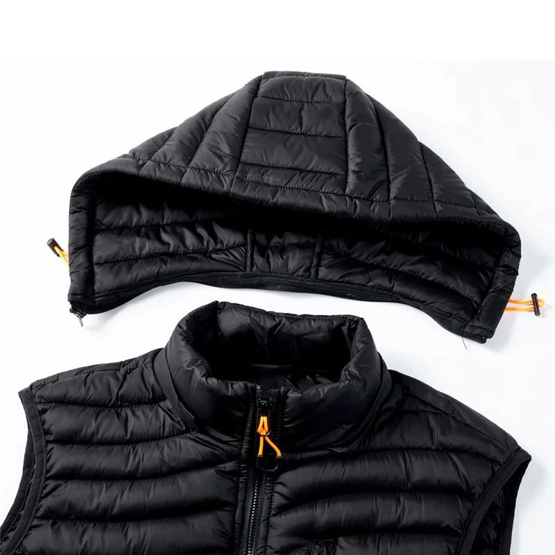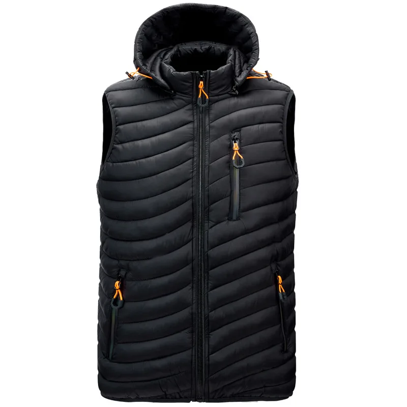 Мужской жилет со съемной шапкой, простые однотонные теплые куртки и пальто на молнии, зимние модные удобные мужские жилеты, новинка 2022