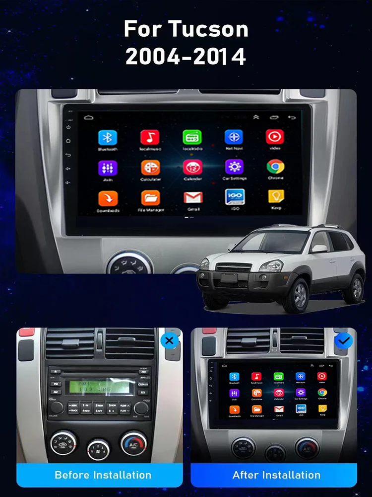 Автомагнитола DSP на Android 10 для HYUNDAI Tucson 2004-2009, автом...