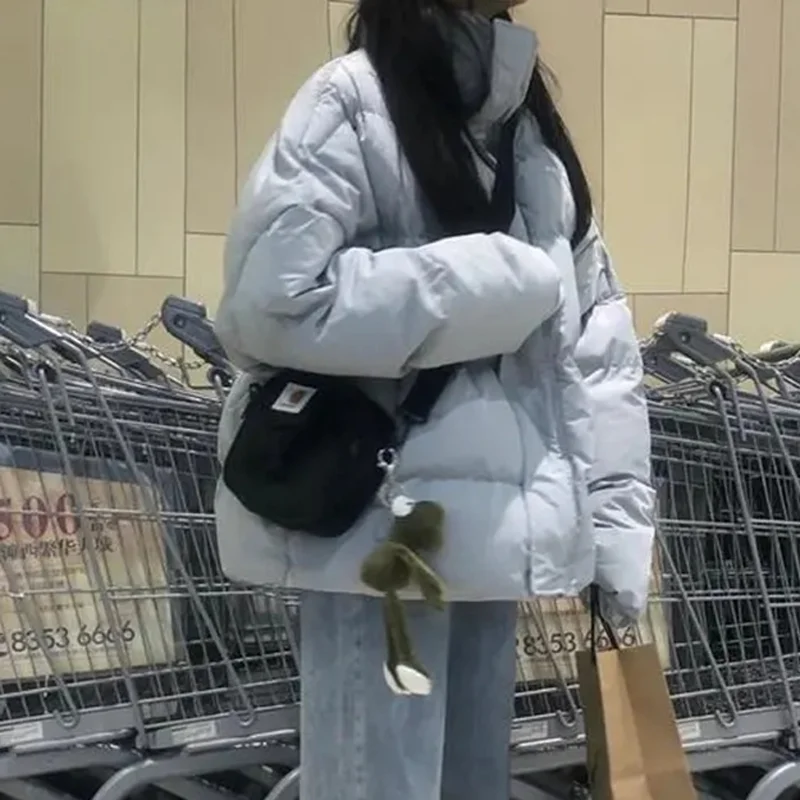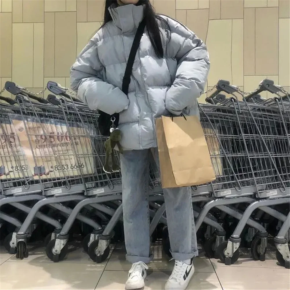 Простая универсальная теплая Женская хлопковая куртка в Корейском стиле однотонные парки свободного покроя Harajuku 2021 винтажные зимние свободные пальто на молнии