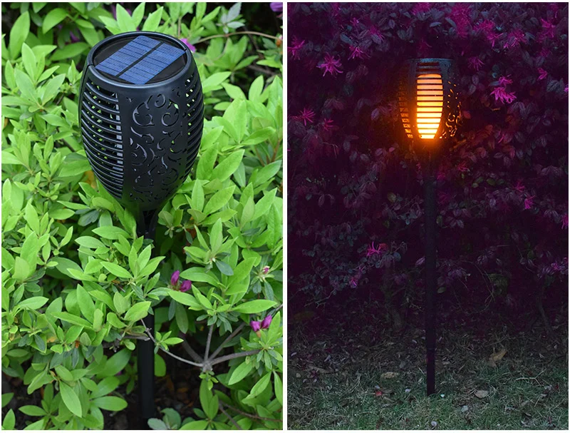 Солнечный светильник с пламенем, уличный светильник для двора, сада, ландшафта, светодиодный светильник с зарядкой и заземлением для украшения газона