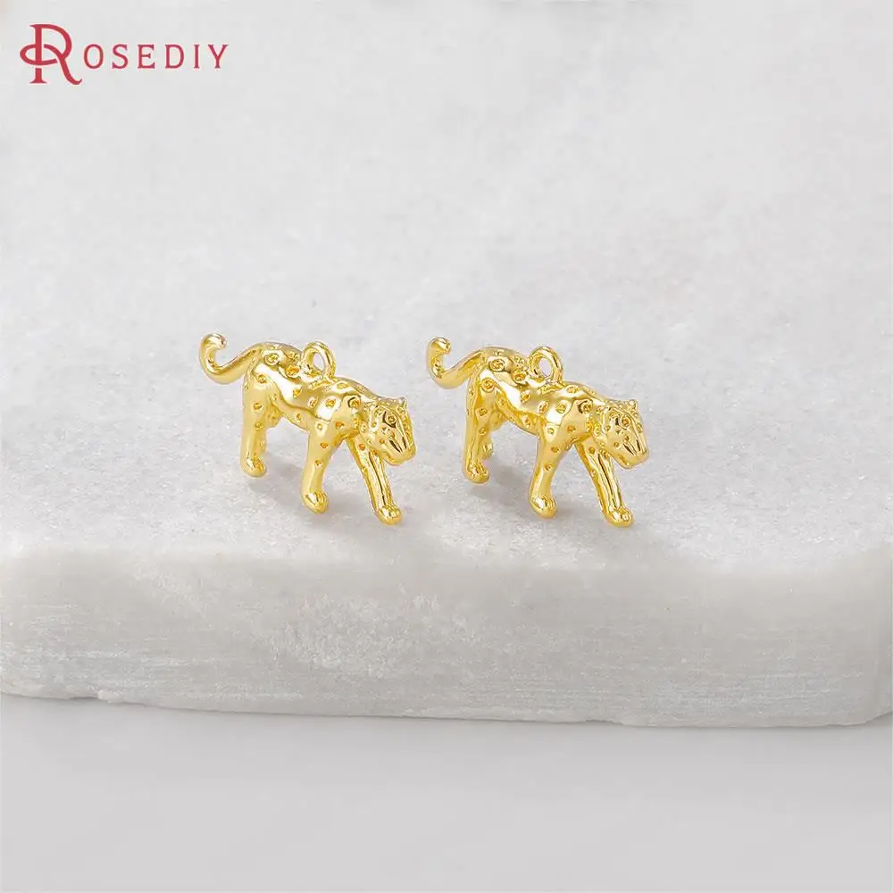 Подвески латунные с леопардом, с отверстием 1 мм, 24 К, 6 шт.