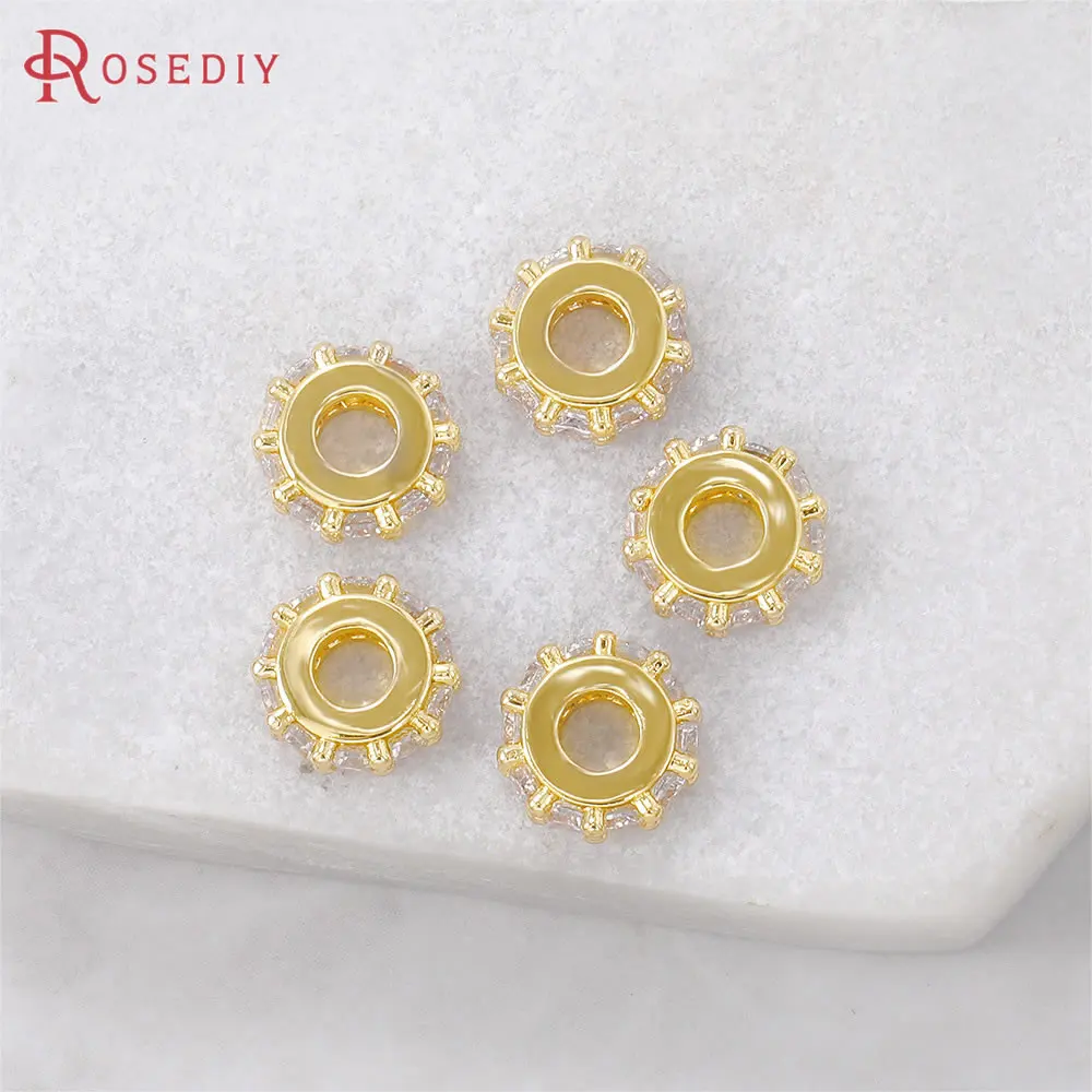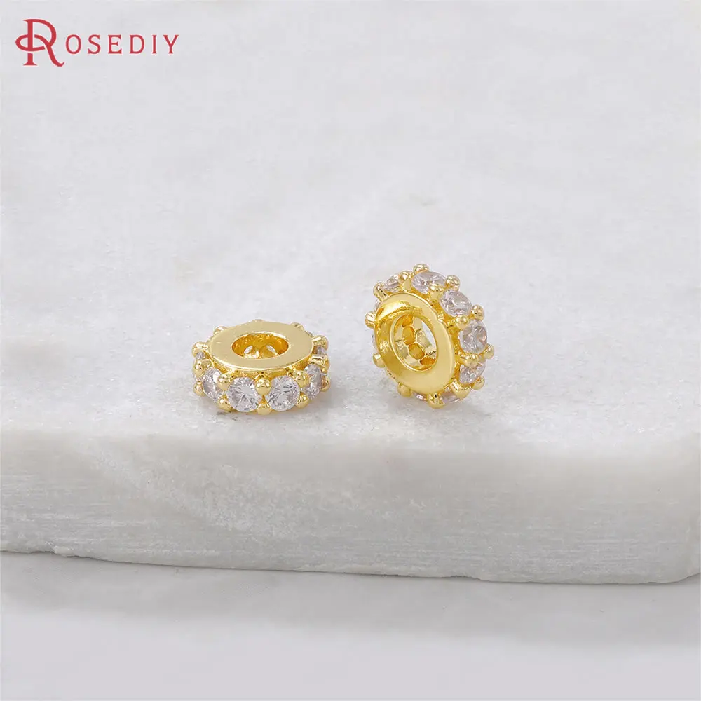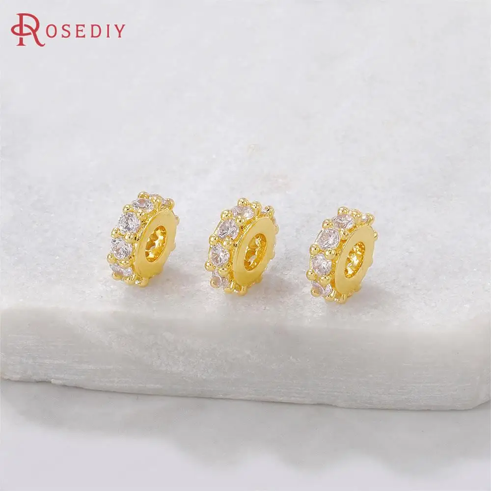 Круглые браслеты из латуни и циркония, 4 шт., 24 к, золотистого цвета, бусины-разделители для изготовления ювелирных изделий, фурнитура сделай сам, аксессуары, (40535)