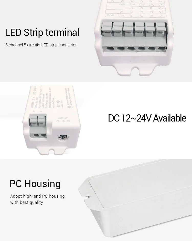 Применимые светаSingle Color CCT RGB RGBW RGB+CCT LED Strip Light Tape