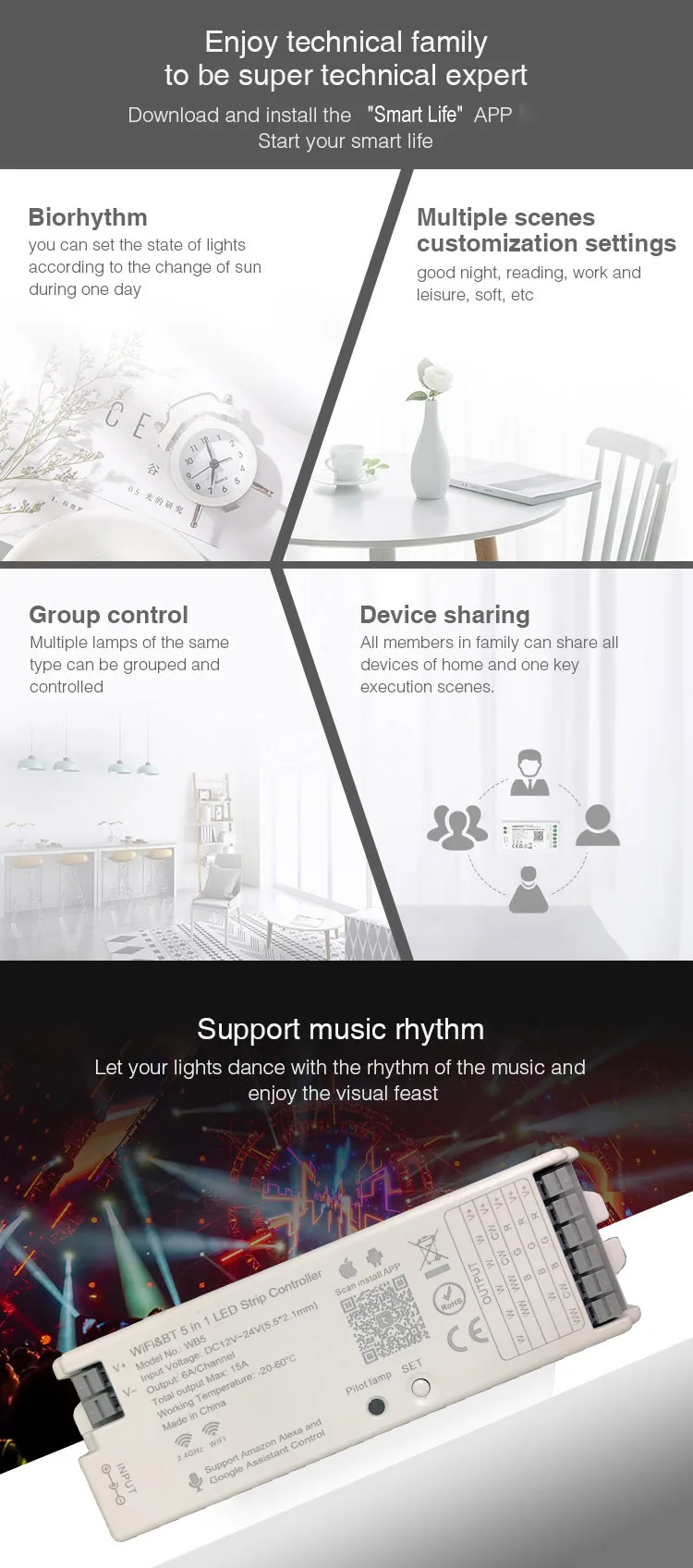 DC12-24V Tuya 2,4G Smart Life App WIFI и Bluetooth-cam 5 в 1 светод...