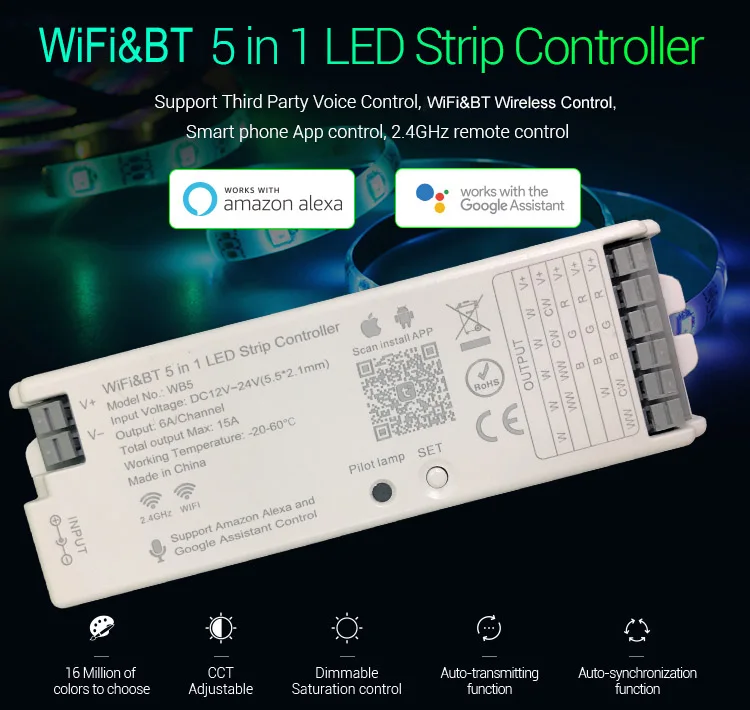 WB5 DC12-24V 5 в 1 светодиодный контроллер Tuya 2,4G Wifi для одноц...