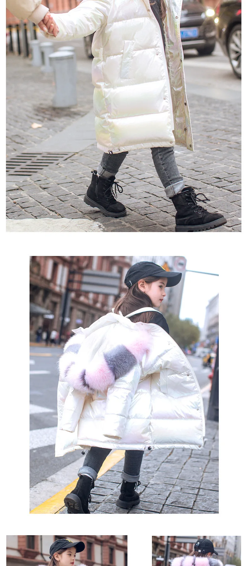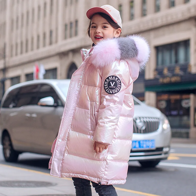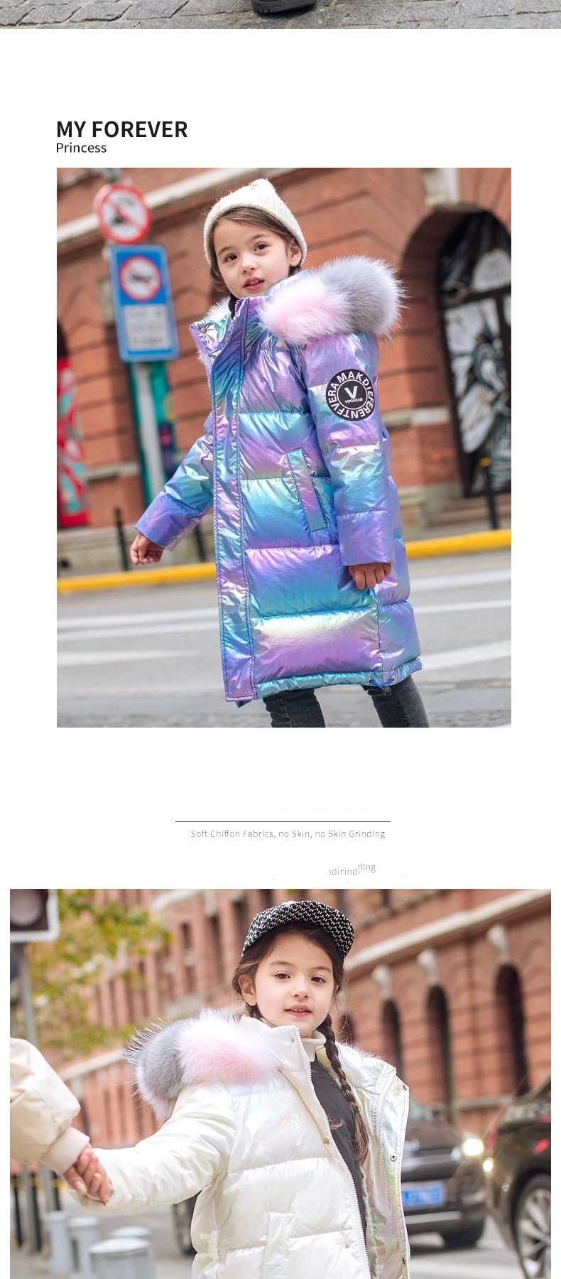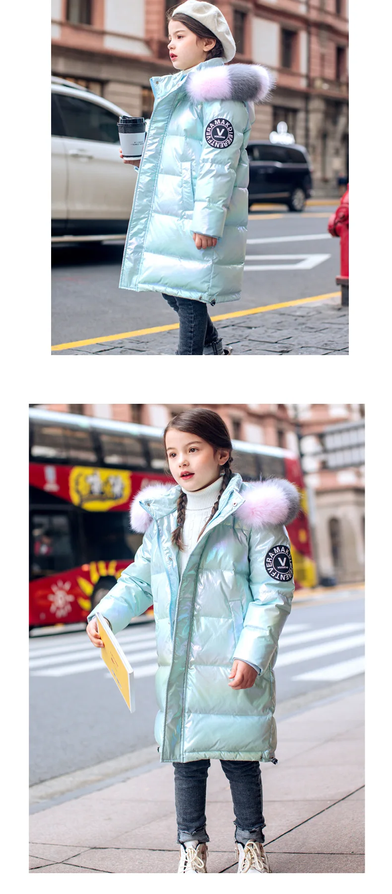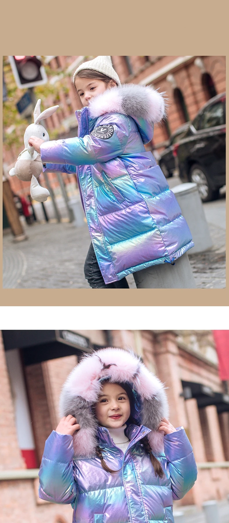 Детский Зимний пуховик для девочек, блестящее пальто на белом утино...