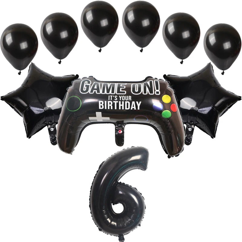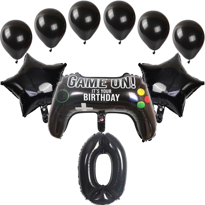 Игровой контроллер, 10 шт.лот, воздушный шар из фольги, черные цифровые шары, украшения для дня рождения, надувные игрушки для детей, Детский душ