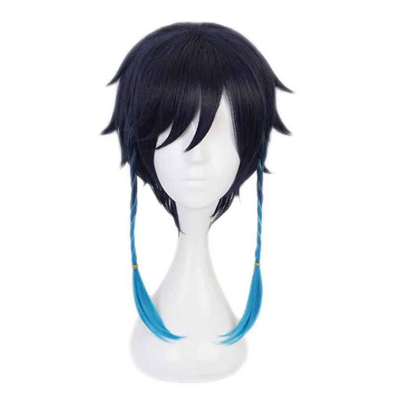 Парик для косплея New Cospaly Game Genshin Impact Kaeya черно-синий...