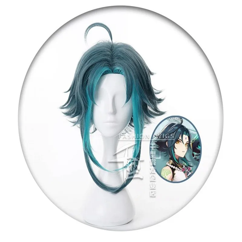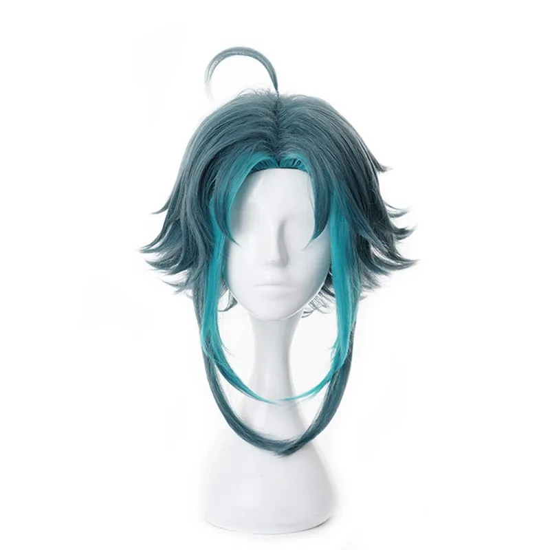 Парик для косплея Game Genshin Impact Venti, термостойкий синий кос...