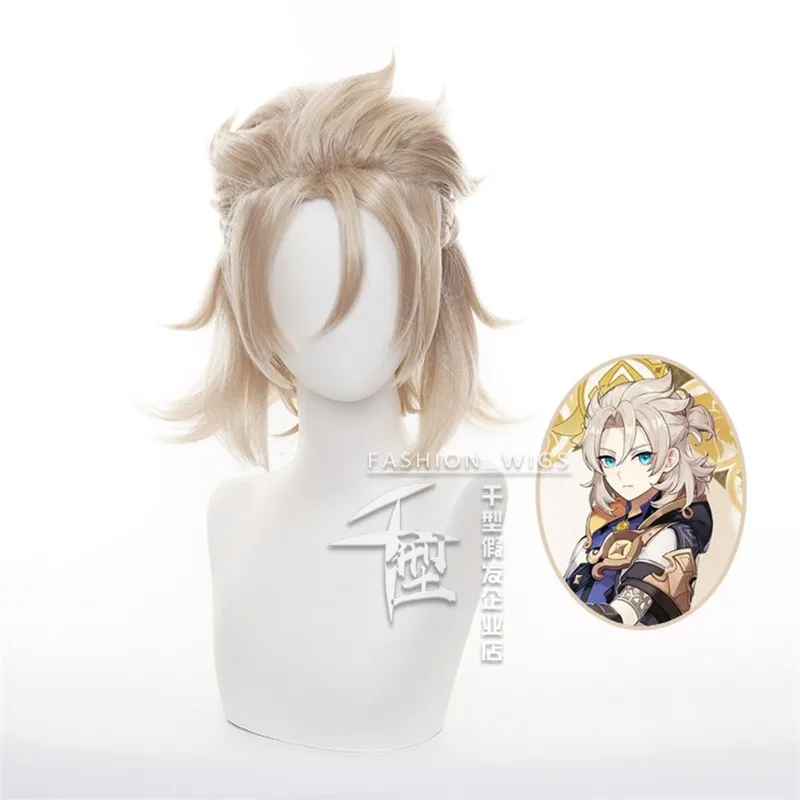 Парик для косплея аниме Genshin Impact Venti, термостойкий, с корот...