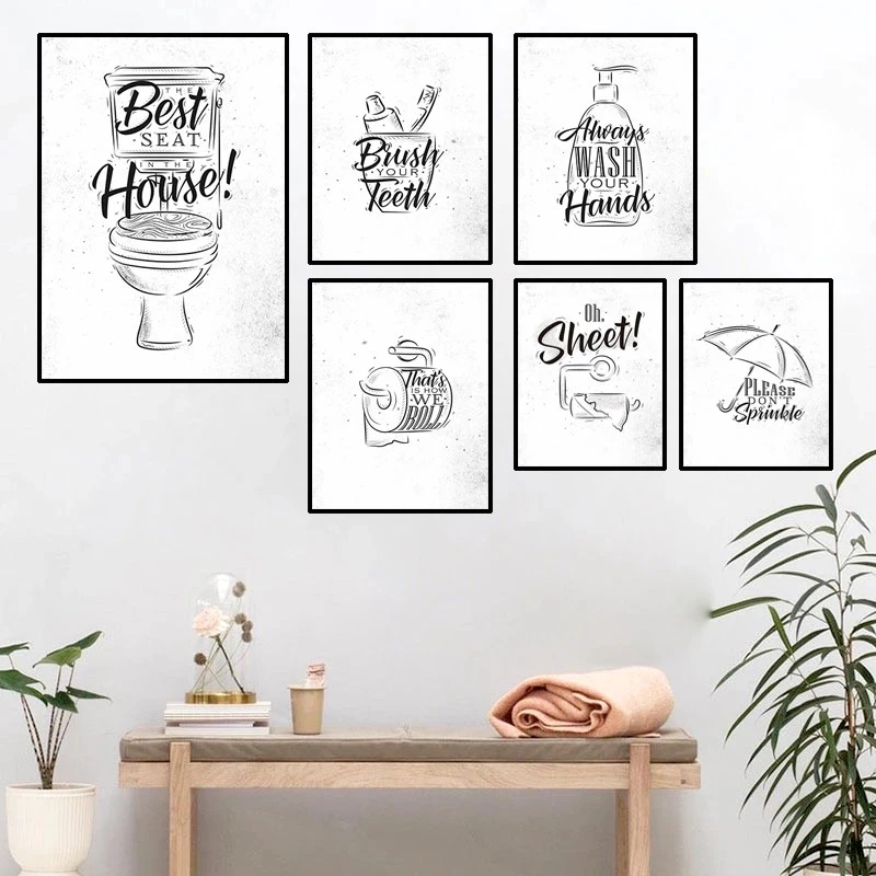 Картина с надписью мыть зубы на холсте, настенный Декор ванной комнаты, черно-белая