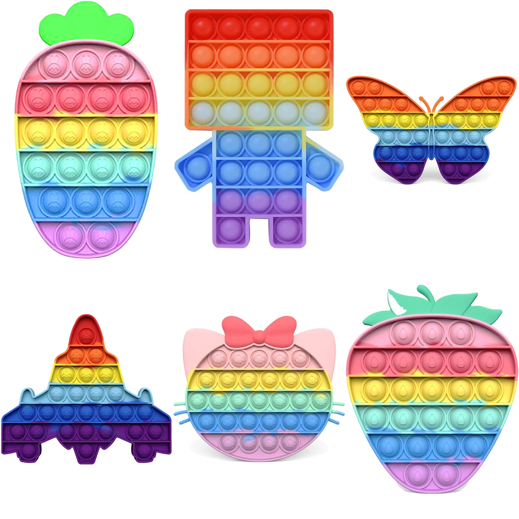 Антистрессовая игрушка pop с простыми затемненными радужными кнопками, брелок для ключей, силиконовая игрушка-антистресс для повседневного использования