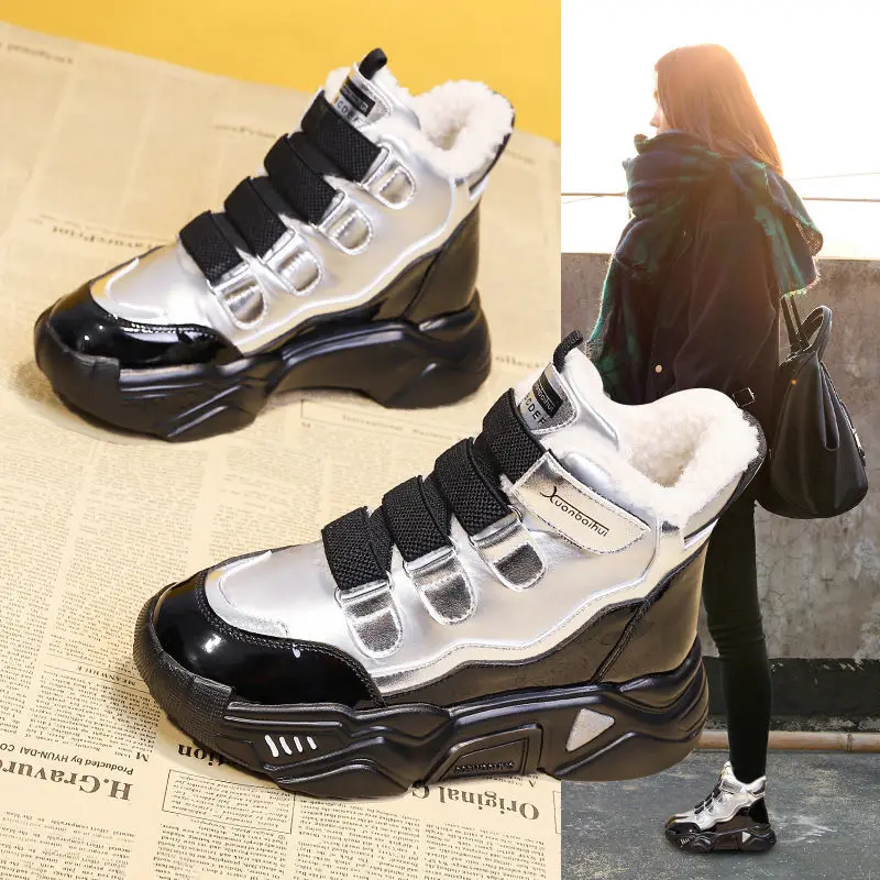 Женские кроссовки на толстой подошве, водонепроницаемые кроссовки с подкладкой из плюша и сетчатого материала, Осень-зима